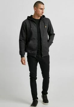 Acheter 🛒 INDICODE 👖 JEANS Sweat à Capuche Zippé – Black Mix 🤩